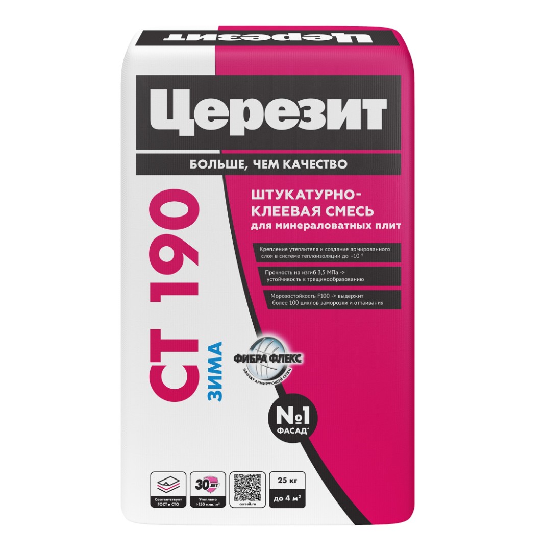 Штукатурно-клеевая смесь Ceresit СТ 190 для МВ плит Зима (25 кг) в Городище