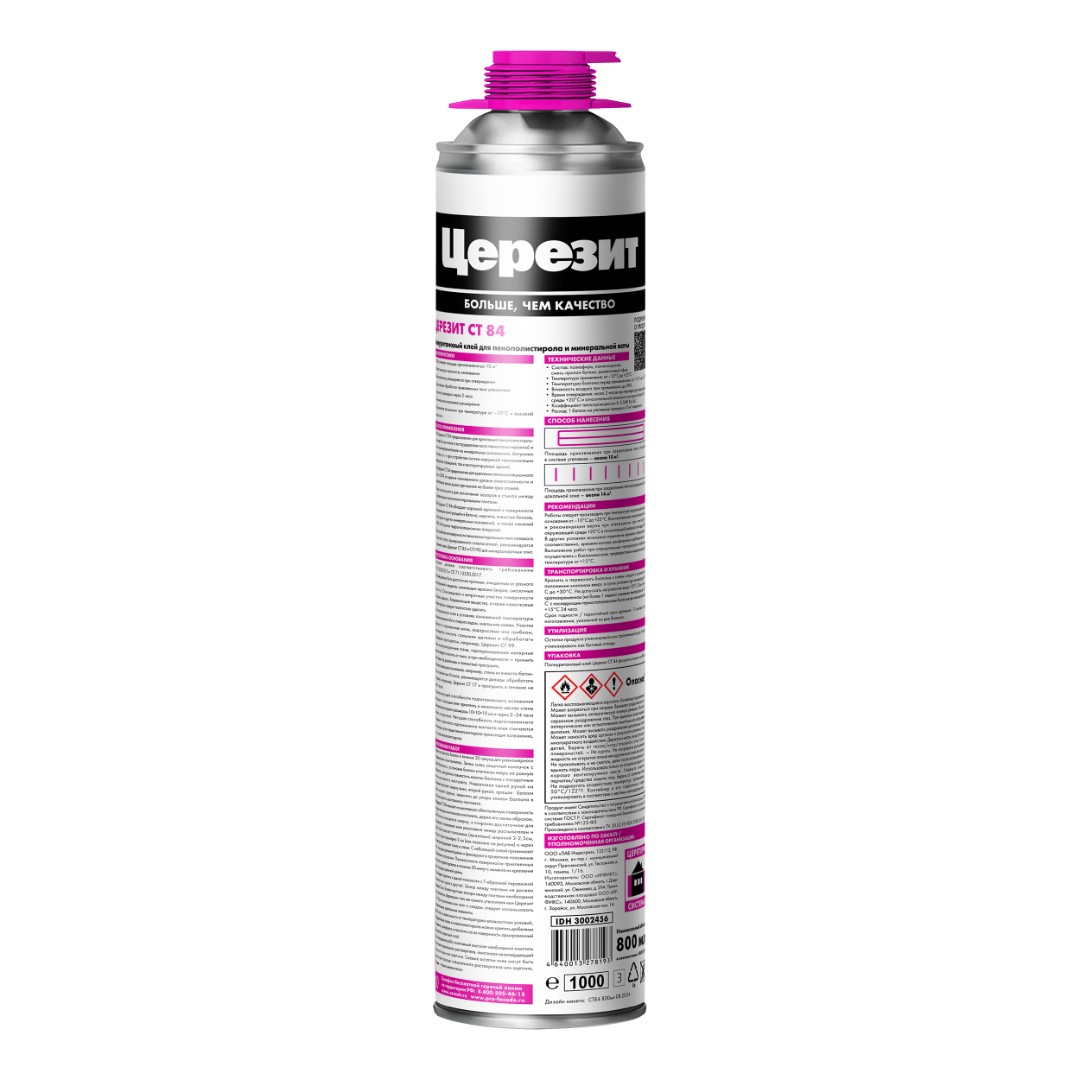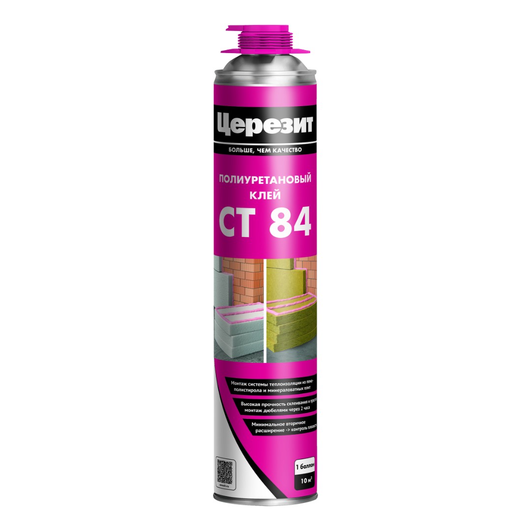 Полиуретановый клей CT 84 Express PLUS предназначен для крепления плит из суспензионного (EPS) и экструзионного (XPS) пенополистирола, а также минераловатных плит при наружном утеплении фасадов как вновь возводимых зданий, так и при реновации существующих систем теплоизоляции.
