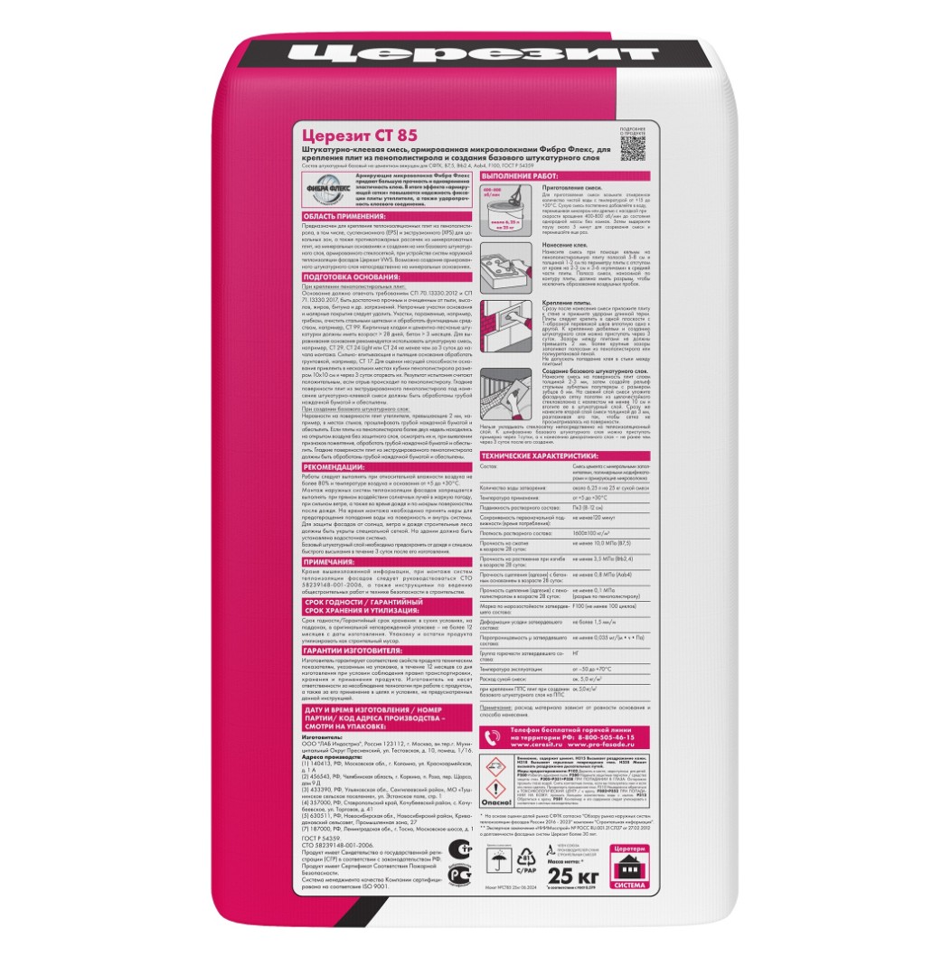Штукатурно-клеевая смесь Ceresit СТ 85 для пенополистирола (25 кг)