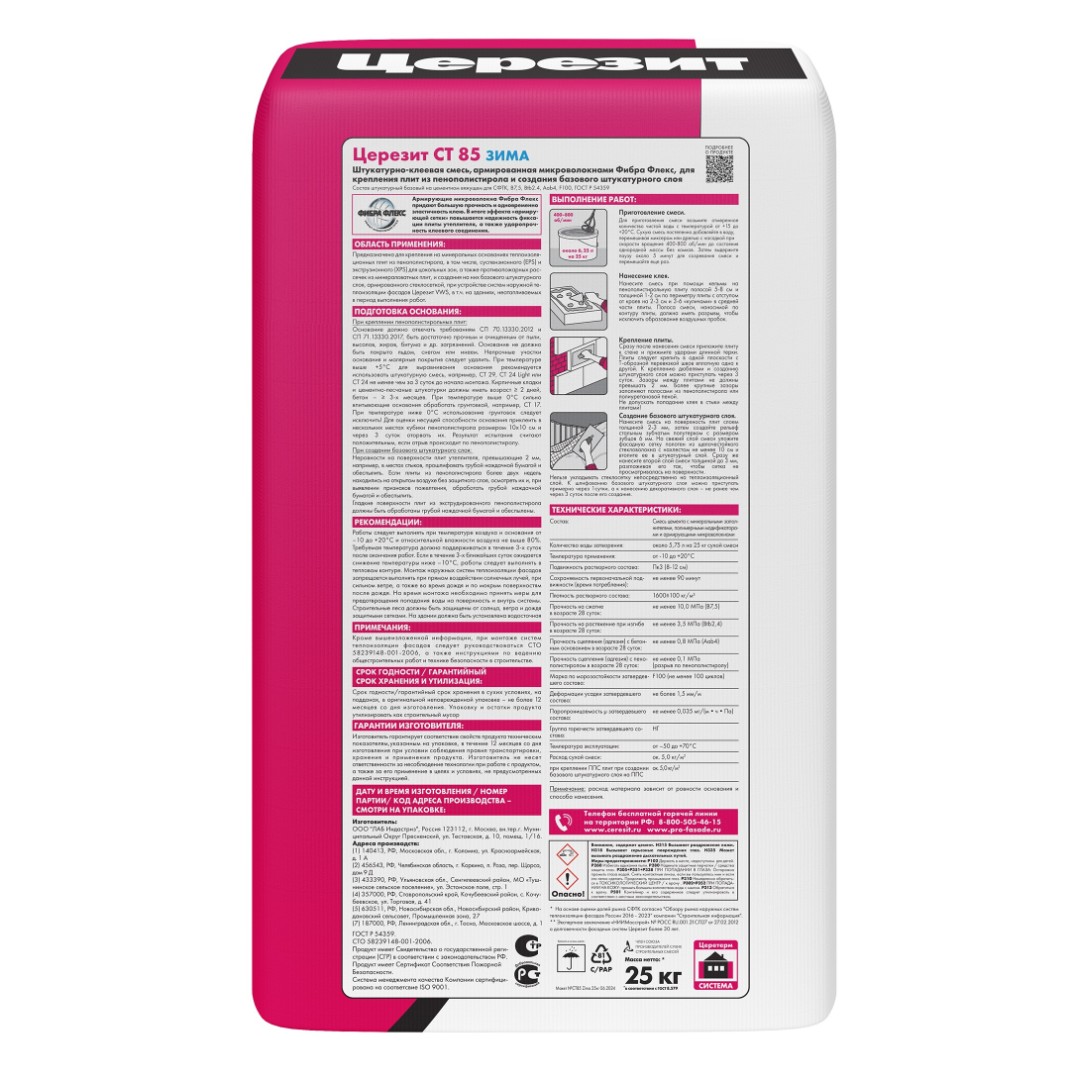 Штукатурно-клеевая смесь Ceresit СТ 85 для пенополистирола Зима (25 кг)