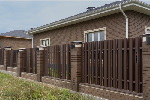 Ограждение такого типа визуально обладает легкостью, оно продуваемо, не обладает парусностью, оставляет участок частично открытым, но при этом максимально защищённым.