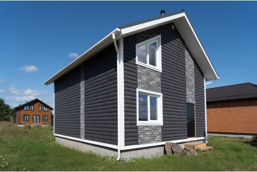 - В отличие от облицовки фасада деревом, сайдинг под бревно металлический «Блок-хаус» прост в монтаже и не требует дополнительного послемонтажного ухода.