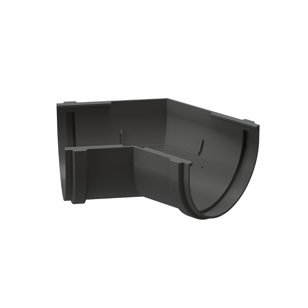 Угол желоба выразительного оттенка «Графит», соединяет два желоба такого же цвета под углом 135 градусов.