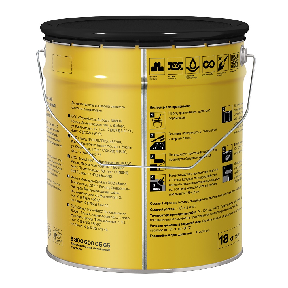 Описание товара: "Мастика Технониколь AquaMast для кровли, 18 кг"