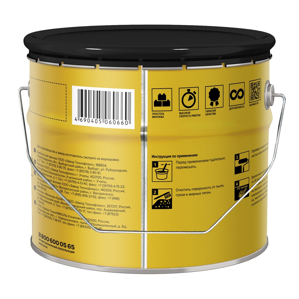 Описание товара: "Праймер Технониколь AquaMast битумный готовый, 2,4 кг"