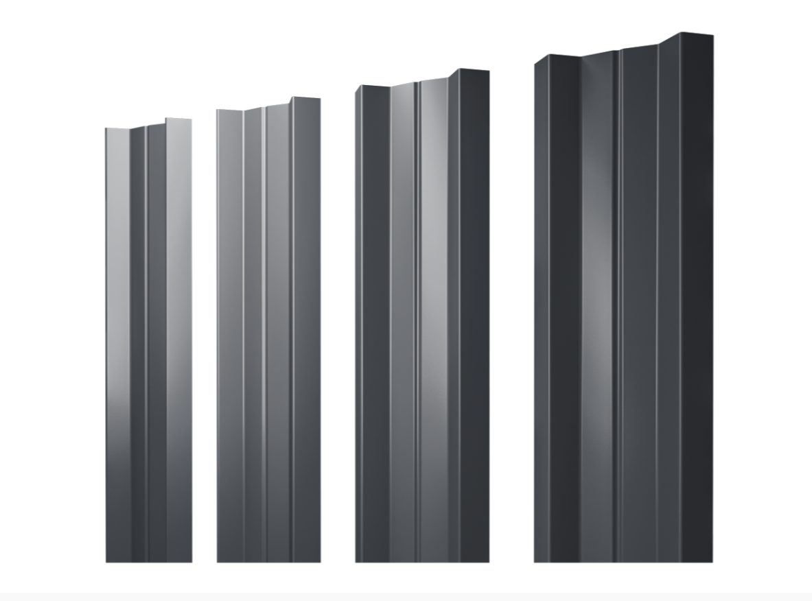 Штакетник М-образный А с прямым резом 0.5 Satin Matt RAL 7024 мокрый асфальт