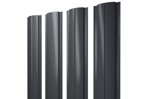 Штакетник Полукруглый Slim с прямым резом 0,5 Rooftop Бархат RAL 7024 мокрый асфальт